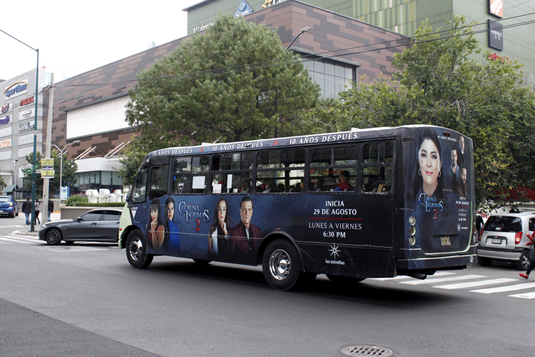 Espectacular móvil con un área total de impresión de 45m2 y laterales de 8.5m x 2.5m. Esto la convierte en una publicidad muy atractiva debido a su gran tamaño.
