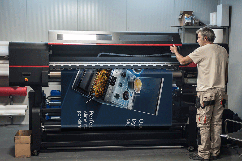 Con la impresión en gran formato podemos imprimir materiales como viniles, sintéticos, rígidos o telas, con una resolución desde 720 hasta 1400 dpi.