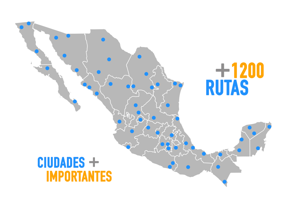 ◉ Contamos con mas de 1200 rutas en todo el país y en las ciudades mas importantes de cada estado con recorridos por las avenidas mas transitadas.